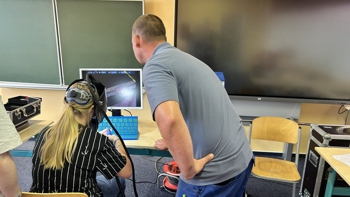 ![]() Frau E. Schnepf-Frahm überreicht der Schülerin L. Panfill den unterzeichneten Vertrag für den Pra-xislerntag im Schuljahr 2025/2026 |