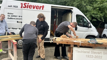 Mit Enten zum Angeln, frischen Wraps und einem kompletten Dachstuhl verwandelte sich der Schulhof der Regionalen Schule „Siegfried Marcus“ am 12. September in eine lebendige Werkstatt für unterschiedlichste Berufe. Die 3. Hofmesse bot den Neuntklässlern praxisnahe Einblicke in verschiedene Handwerksberufe – und zeigte eindrucksvoll, wie vielfältig die beruflichen Perspektiven in der Region sind. Für kulinarische Energie sorgte der Foodtruck von Gastroburner: Gemeinsam mit den Schülern wurden frische Wraps zubereitet, die nicht nur schmeckten, sondern auch einen Eindruck davon gaben, wie spannend die Gastronomie sein kann. Unterstützt wurde das Team des Gastroburners von zwei erfahrenen Köchen aus dem Steakhaus und dem Farmerhotel in Basedow. Beide Betriebe bieten Jugendlichen die Möglichkeit, ein Praktikum zu absolvieren oder eine Ausbildung zum Koch bzw. zur Köchin zu beginnen. Ein besonderes Highlight bot der Garten- und Landschaftsbaubetrieb Dädelow. Mit schwerem Gerät, genauer gesagt mit einem Bagger, konnten die Jugendlichen u.a. Enten „angeln“ – spielerisch, aber mit einem realistischen Blick auf die Präzision, die im GaLaBau täglich gefordert ist. Handwerk pur vermittelte die Bauschlosserei Buhr. An einem Schweißsimulator übten die Jugendlichen das sichere Arbeiten mit Metall, parallel dazu konnten sie den Bau einer Stahltreppe begleiten – ein anschauliches Beispiel für die Verbindung von traditioneller Metallbearbeitung und moderner Technik. Das Handwerk war gleich durch mehrere Betriebe vertreten: die Heizung- und Sanitär-Dill GmbH sowie die Tischlerei Sievert. Unter deren Anleitung entstanden stabile Holzbänke, während die Handwerkskammer den jungen Gästen zeigte, wie vielseitig der Bereich Sanitär, Heizung und Klima ist – ein Berufsfeld, das heute mehr denn je Schlüsselrolle für Energiewende und Klimaschutz spielt. Besonders eindrucksvoll präsentierte sich mit Holger Lobitz die Handwerkskammer Ostmecklenburg-Vorpommern mit einem kompletten Dachstuhl, den die Schüler gemeinsam mit einem Zimmermann errichten durften. Holz riechen, Werkzeuge führen, Konstruktionen verstehen – praxisnäher geht Berufsorientierung kaum. Auch kreative Köpfe kamen auf ihre Kosten: Eine Friseurmeisterin stellte verschiedene Frisurentechniken vor und brachte Übungsköpfe mit, an denen die Schüler selbst ihr Geschick erproben konnten. Abgerundet wurde die Messe durch die Agentur für Arbeit. Berufsberaterin Josie Stegemann stand den Jugendlichen beratend zur Seite und informierte über unterschiedliche Ausbildungswege, Berufsfelder und die Vielzahl an Möglichkeiten, die die Region bereithält. Fazit: Der Vormittag war ein voller Erfolg. Die Schülerinnen und Schüler der 9. Klassen konnten Handwerk nicht nur anschauen, sondern erleben – mit allen Sinnen. Das Projekt Hofmesse, 2025 von der Regionalen Schule „Siegfried Marcus“ und dem RUN e.V. initiiert, hat erneut bewiesen, wie wichtig praktische Berufsorientierung ist. So wird aus Theorie Begeisterung – und vielleicht auch schon die erste Idee für die eigene berufliche Zukunft. |