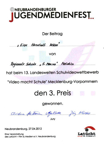 Kurzfilm der 7b der Malchiner Marcusschule. Gelobt wurden seitens