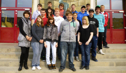 (B.Teggatz) Wenn es auch momentan viele wichtige Dinge zu schaffen gilt in den 10.Klassen der „Siegfried Marcus“ Regionalschule Malchin, so darf Kultur trotzdem nicht fehlen. Nachdem vormittags noch in der Mathevorprüfung hochkonzentriert um gute Ergebnisse gekämpft wurden, fuhren die Schüler nachmittags ganz entspannt mit dem Bus nach Berlin. Das Ziel war das Musical „ Hinterm Horizont“. Während sich in der Freizeit einige nach solange Stillsitzen kräftig die Beine vertraten, mancher schaffte es sogar bis unter die Linden, genossen andere das schöne sonnige Wetter bei einer Packung Donuts am Potsdamer Platz. Beste Plätze ermöglichten uns dann im Theater, die Schauspieler und die Geschichte der Ost- West- Liebe genau zu verfolgen. Nach und nach zog es auch den Letzten in seinen Bann. Auf dem Nachhauseweg hatte so mancher noch den Ohrwurm „Hinterm Horizont“ im Kopf. Weiter wird es nun bei den 10. Klassen gehen! Nochmals volle Konzentration in den letzten Unterrichtsstunden, die Anmeldungen für die schriftlichen Prüfungen Anfang Mai sind von allen abgegeben worden und ganz schnell ist der letzte Schultag da! Mal sehen, was dann für jeden einzelnen dort hinterm Horizont wartet! |