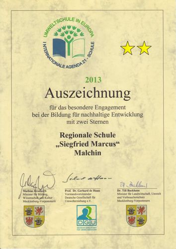 der "Siegfried Marcus" Regionalschule Malchin im Rahmen unseres