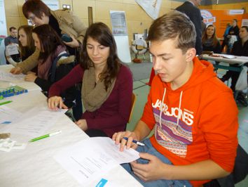 die jetzigen Neuntklässler einschlagen werden. Am 03.April 2014 bot die Berufsfachmesse Nordjob in der Stadthalle Neubrandenburg ein interessantes und abwechslungsreiches Rahmenprogramm, z.B. Vorträge zu Themen wie : „Keine Bange vor dem Eignungstest“, „ Das Praxisstudium der Medizinbranche“ oder „Am Fachgymnasium zum Abitur“. An fast 40Ständen von Firmen und Hochschulen konnte man spontane Gespräche führen oder nach im Voraus sorgfältig geplanter Terminabsprache Kontakt zu den Anbietern aufnehmen. Die Jungen und Mädchen der Klassen 9a und 9b waren gründlich durch ihren Lehrer Herrn Braun auf diesen Tag vorbereitet worden. Viele Eindrücke, Informationen und Anregungen eröffneten völlig neue Perspektiven, und am Ende der Veranstaltung drehten sich die Gespräche der meisten Schüler genau um das gerade Erlebte und um ganz individuelle Zukunftsträume. |