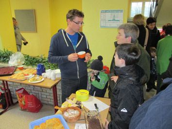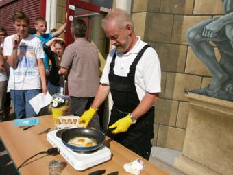 Mit einer kleinen Kochshow-Einlage wurde der Hausmeister der Regionalen Schule "Siegfried Marcus" Burkhard Friedrich in den wohlverdienten Ruhestand verabschiedet. Der Schülerrat und die Lehrer der Schule hatten dazu einige knifflige Aufgaben vorbereitet, die er vor versammelter Schülerschar erfüllen musste. Dazu gehörte u.a. das Braten von Eiern mit Hilfe von Werkzeug aus dem Hausmeisteralltag, was dem Hobbykoch jedoch mühelos gelang. Ganz herzlich bedankten sich alle Schüler und Lehrer bei dem allseits beliebten Hausmeister u.a. mit einer Foto-CD mit gesammelten Eindrücken aus den letzten Jahrzehnten an der Marcusschule. Mit einigen Dankesworten von Burkhard Friedrich klang die gelungene Abschiedsrunde aus. |