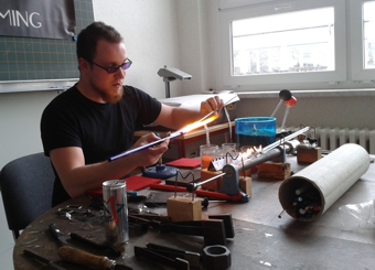 man später einmal werden möchte. Wie wäre es mit dem Beruf des Glasbläsers? Sicher ungewöhnlich, aber machbar. Dies konnten die Schüler und Schülerinnen der Klasse 8a der Siegfried- Marcus- Schule in Malchin an einem Projekttag selbst erfahren. Der Glasbläser Jan Lange(Glass Flemming) aus Stavenhagen war zu Gast und stellte seinen Beruf auf kurzweilige Art vor. Er schilderte den Schülern, wie und wo man sich zum Glasbläser ausbilden lassen kann und welche Voraussetzungen man für diesen Beruf benötigt. Natürlich fachsimpelte Herr Lange auch über die Kunst des Glasblasens und antwortete geduldig auf die vielen Fragen der Schüler über Glas, seine Herstellung und die chemische Zusammensetzung. Begeistert konnten alle zuschauen, wie aus einem einfachen Glasstab Schritt für Schritt ein kleiner Bär gestaltet wurde. Dass diese Arbeit keine leichte ist, konnten dann alle Schüler selbst erfahren. Sie durften alle eine kleine Bewässerungskugel herstellen. Mit viel Puste entstanden wahre Kunstwerke, die als Erinnerung an diesen Projekttag sicher einen guten Zweck erfüllten. Alle Schüler und auch die Klassenleiterin der Klasse 8a möchten sich auf diesem Weg ganz herzlich bei Herrn Lange für diese lustigen und lehrreichen Stunden bedanken. |