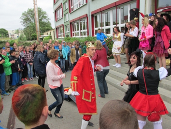 (A.Teggatz) 10 Jahr sind eine sehr sehr lange Zeit. Und es ist immer wieder erstaunlich, wie schnell sie doch vergeht. Wenn diese Zeit für Schüler um ist, lassen untrügliche Zeichen dies unschwer erkennen. So geschehen am 28.Mai diesen Jahres. Da wird man schon Mal von einem Schlumpf gegrüßt, von einem gestiefelten Kater im Schulhaus beinahe umgelaufen oder von einer Fee auf ein Stück Schokolade eingeladen. Dieses Jahr stand das Thema Märchen für die 10Klässler für ihren letzten Schultag auf dem Plan. In phantasievollen Kostümen wandelten sie in dieser Besetzung das letzte Mal durch das Gebäude. Mit einem gelungenen Programm auf dem Pausenhof, begleitet vom Jubel der jüngeren Schüler, verabschiedete sich die Klasse 10 von ihrem regulären Schulalltag. Nun stehen noch einige Prüfungen aus und dann beginnt für alle Absolventen der Jahrgangsstufe 10 das große Wundern. Wo sind bloß die 10 Jahre Schule geblieben? |