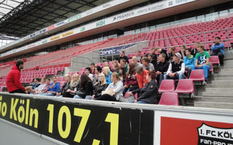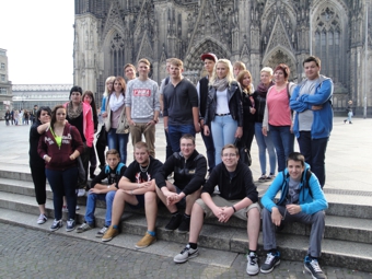 Besuch des Schokoladenmuseums. Ähnlich zu unserem NDR hat Nordrhein-Westphalen den WDR. In dem riesigen Gebäudekomplex zeigte uns ein junger Mitarbeiter viele interessante Dinge, die speziell mit dem Medium Fernsehen zu tun haben. Wir spazierten staunend durch die verschiedenen Studios, zum Beispiel durch das der ARD-Sportschau. Sportlich ging es auch weiter mit einer geführten Stadiontour beim 1. FC Köln. Wir saßen in der VIP-Lounge, spielten ein Interview im Pressezentrum durch, schauten in die Spielerkabinen und schmunzelten über die Geschichten von dem Teammaskottchen, dem Geißbock Hennes. Als Höhepunkt marschierten wir zu den Klängen der lokalen Mannschaftshymne wie zwei gegnerische Teams die Treppen hoch auf den Fußballrasen. Am letzten Tag hätten wir, falls noch Geld übrig geblieben wäre, nach Herzenslust im CentrO Oberhausen “shoppen” können… Zwei wichtige Programmpunkte standen noch an: Besichtigung des Agentenmuseums “Top Secret” mit originalen Gadgets, Waffen, halbdurchlässigen Spiegeln und einem Laser-Hindernis-Parcour sowie am Abend der Besuch des berühmten Musicals “Sister Act” in einem extra gebauten Musicaltheater. Mit den Klängen dieser begeisternden Show traten wir die nächtliche Heimreise an. Gern erinnern wir uns an die ereignisreichen Tage, aber sehr wichtig war auch das Zusammensein mit den Mitschülern in einer für uns recht fremden Umgebung - der Großstadt Köln. |