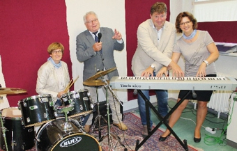 Kommer am Schlagzeug, Stadtvertreter Hermann Liebscher singt,