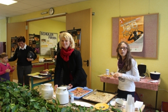 selbstgebackenen Waffeln der Klasse 9b und die frisch gegrillten