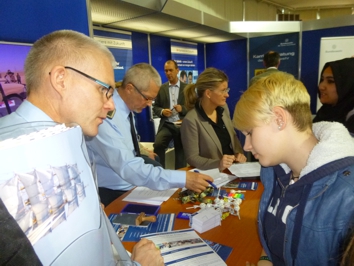 (K.Beck) Wer Schüler einer 9. Klasse ist, sollte sich schon rechtzeitig Gedanken um seine berufliche Zukunft machen. Die Berufsfindung und Unterstützung der Jugendlichen bei der Suche nach einem Ausbildungsplatz nimmt in der Siegfried- Marcus-Schule in Malchin einen großen Stellenwert ein. Besonders in Klasse 9 gab es schon vielfältige Möglichkeiten zur Berufsorientierung, die durch den Kontaktlehrer für BO Herrn Braun begleitet und organisiert wurden. “Durchstarten in M/V“ unter diesem Motto besuchten die Klassen 9a und 9b der Marcus-Schule am 25.3. 2015 die Job- Messe in der Stadthalle in Neubrandenburg. Hier konnten sich die Jugendlichen über die vielfältigen Berufsangebote informieren, aber auch zielgerichtet das Gespräch in über 60 verschiedenen Bereichen suchen. Ob Verkäufer, Architekt, Polizist oder Landwirt, M/V sucht seine Auszubildenden. Also heißt es für die Schüler der Klasse 9: Nutzt eure Chancen und startet durch. |