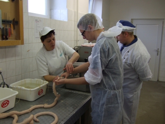 (T.Engel) Premiere feierte am 16. März ein besonderer Schnuppertag der Beruflichen Schule Malchin. Um jüngeren Schülern anderer Schulen den Beruf des Fleischers/Fleischfachverkäufers näher zu bringen, organisierten die Azubis zusammen mit ihren Lehrerinnen Fr. Herold und Fr. Blaschke sowie der Außenstellenleiterin Fr. Haasch ein informatives und abwechslungsreiches Programm. Anfangs wurden den sieben teilnehmenden Schülerinnen und Schülern des Malchiner Förderzentrums sowie der Marcusschule in einer Kurzpräsentation die Ausbildungsmöglichkeiten der Beruflichen Schule vorgestellt. Danach ging es ganz praktisch weiter: Einmal lernten die Schüler die verschiedenen Abläufe bei der Herstellung von Wurstwaren kennen und konnten, anfangs noch etwas zurückhaltend, selber Hand anlegen. Eine zweite Gruppe durfte ihre Ideen und Kreativität bei der Zubereitung eines Frühstücks einbringen. Den Auszubildenden war der Spaß an ihrer Arbeit anzumerken und sie überzeugten durch ihre Erklärungen und tolle Teamarbeit. Am Ende des Schnuppertages konnte jeder Teilnehmer dann auch geschmacklich von den Ergebnissen des Tages probieren und kam zu dem Fazit: Selber hergestellt ist einfach lecker! Vielen Dank der Beruflichen Schule Malchin und auf ein Neues im nächsten Schuljahr! |