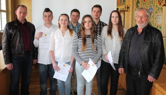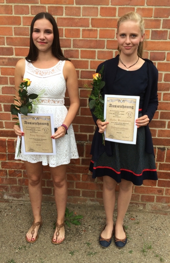 (A.Teggatz) Erfolg hat drei Buchstaben: T U N. Sich dieser Tatsache bewusst, waren in diesem Jahr besonders zwei Schülerinnen aus der Klasse 10a der „Siegfried Marcus“ Schule Malchin. Akribisch, ausdauernd und mit Freude absolvierten sie das Pensum in Klasse 10. Ohne sich hervor zu tun, lernten Maike und Lena sehr erfolgreich in ihrem Jahrgang. Nach den Prüfungen wurde unterm Strich zusammengerecht und das Ergebnis stand wie in Stein gemeißelt fest. Maike Brinkmann erreichte einen Durchschnitt von 1,0 und Lena Hartwig absolvierte die Klasse 10 mit einem Durchschnitt von 1,1. Diese hervorragenden Leistungen verdienen besondere Anerkennung. So wurden diese beiden Vorzeigeschülerrinnen auf der Zeugnisausgabe mit der „Siegfried Marcus“ Ehrenmedaille des Schulförderverein geehrt. Herzlichen Glückwunsch! |