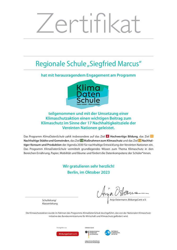 und Schülerinnen der Regionalen Schule „Siegfried Marcus“ Malchin