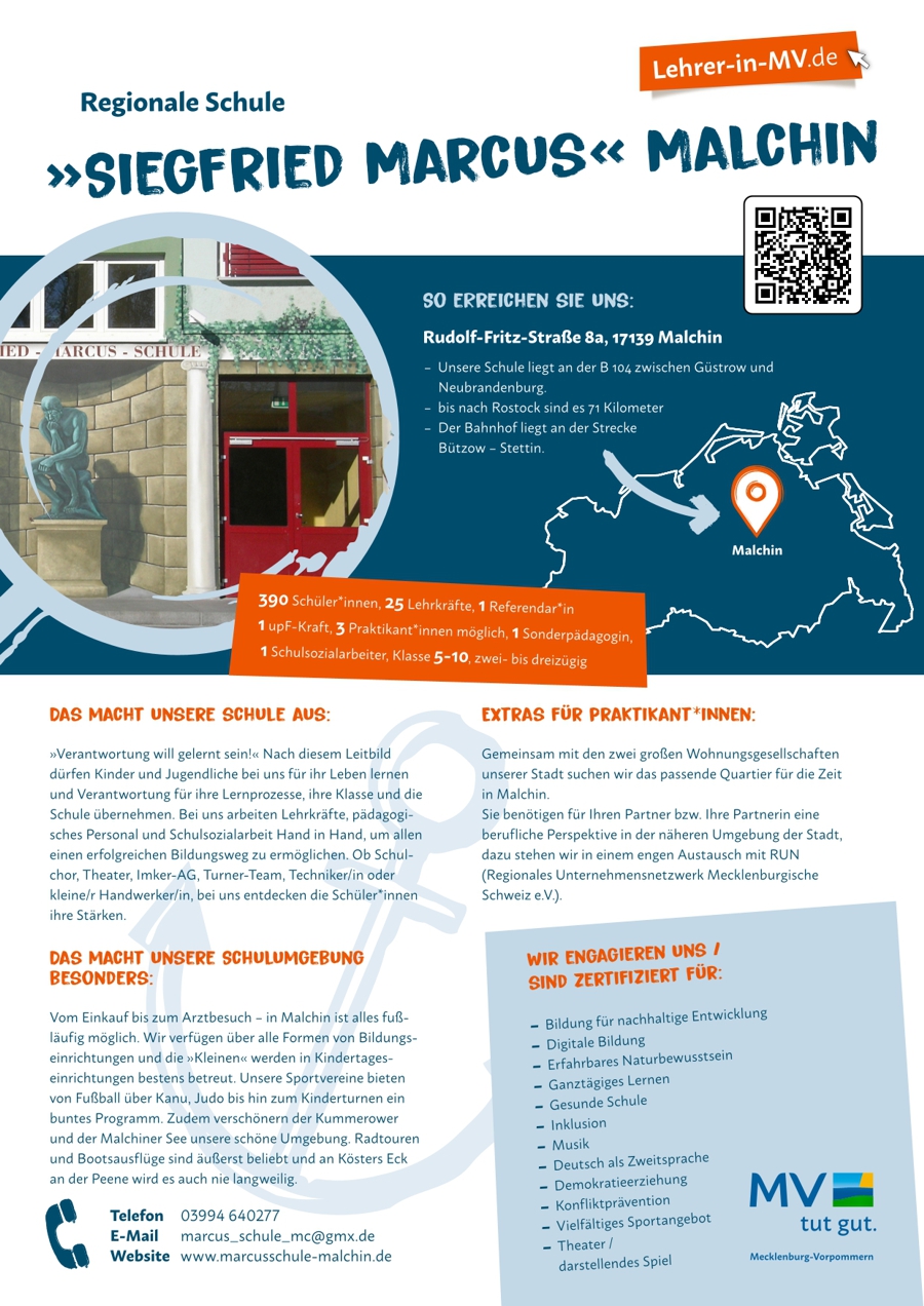 Klassen an der Regionalen Schule „Siegfried Marcus“ Malchin auf dem